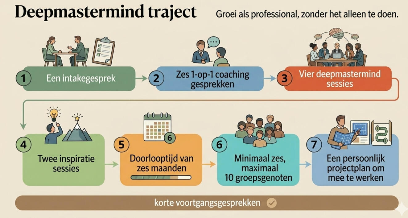 In een Deepmastermind traject verbinden we de zakelijke uitdaging met jouw persoonlijke groei.